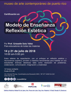 Grisselle Soto Vélez es Directora del Departamento de Educación del Arte y profesora de Educación del Arte en la Escuela de Artes Plásticas y Diseño, artista y consultora educativa. Fue directora del Programa de Bellas Artes del Departamento de Educación en Puerto Rico haciendo una gran obra de desarrollo profesional y curricular. Ha sido directora de proyectos y consultora educativa integrando las artes a distintos ámbitos académicos y comunitarios. Graduada de la Universidad Nacional Autónoma de México. Puedes visitar y compartir su blog en Neuroestetika.com.